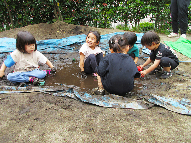 友だちと一緒になって同じことを楽しんだり、生活の中に必要なルールを少しずつ理解しながら興味関心を広げていけるようかかわりをもっています。