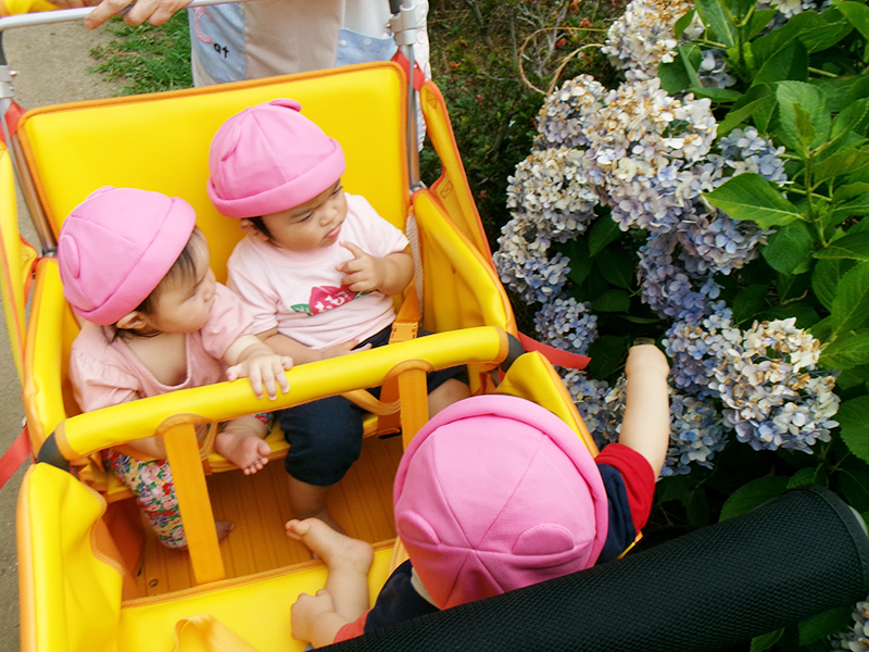 保育者や友だちとのやり取りを通してのコミュニケーションの楽しさや自分でできることの喜びを感じられるよう援助しています。