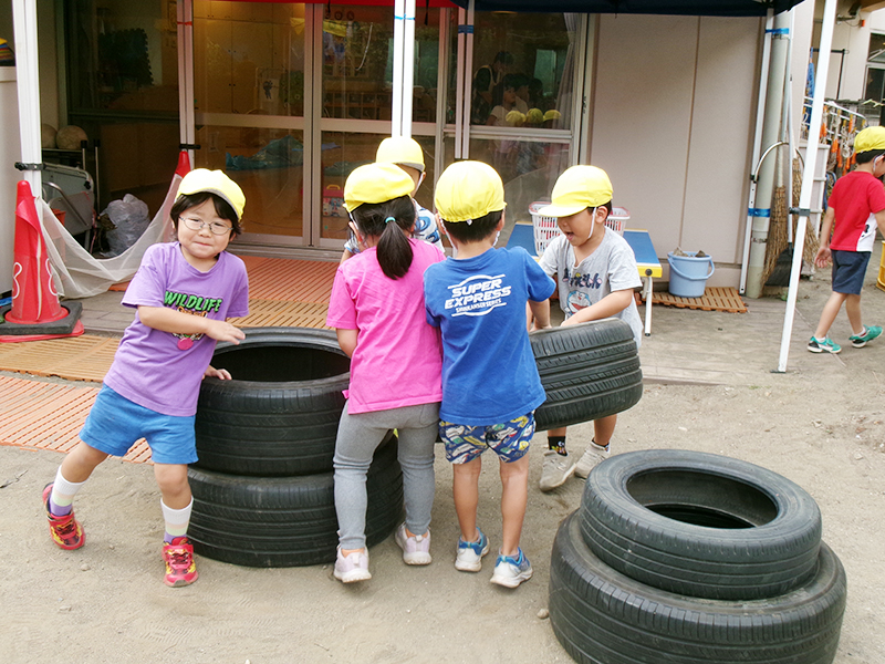 友だちと一緒になって同じことを楽しんだり、生活の中に必要なルールを少しずつ理解しながら興味関心を広げていけるようかかわりをもっています。