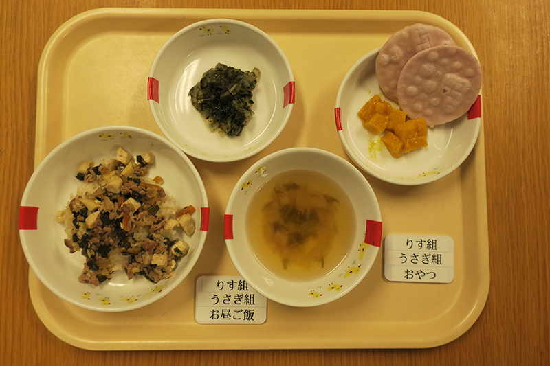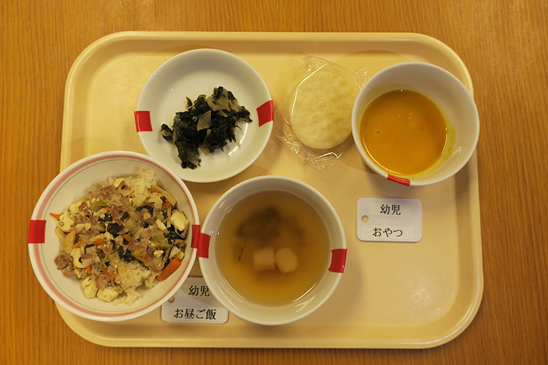 出汁は鰹節からとり、塩こうじ、醤油こうじ手作りの物を使用していたりと、自園調理で安心安全な給食を提供しています。
